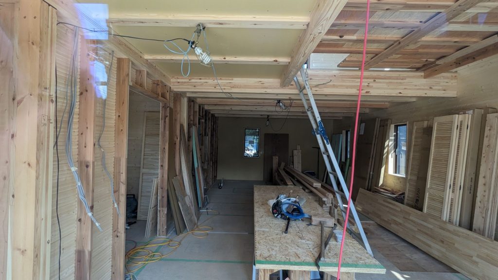 ここまで来るとカタログで散々見た、あの憧れのフランク7の形になっています。本当にカタログがボロボロになるぐらい愛読したので。内装も間仕切りができていて家らしい感じになってきました。