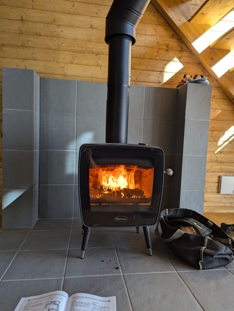 爆弾おにぎりこと父です。今日は僕が絶対に設置したかった薪ストーブを試験運転する日です。業者の方が来てくれて、着火の仕方や温度の保ち方、薪の選び方や日々のお手入れについて、色々レクチャーしてもらいました。が、楽しみすぎて正直あんまり頭に入ってこなかったのです。しかし、火をつけると糸も簡単に着火しました。我が家の薪ストーブはドブレヴィンテージ35。スタイリッシュなフォルムと火付きの良さがいいということで、ベスの家おすすめの薪ストーブでした。
