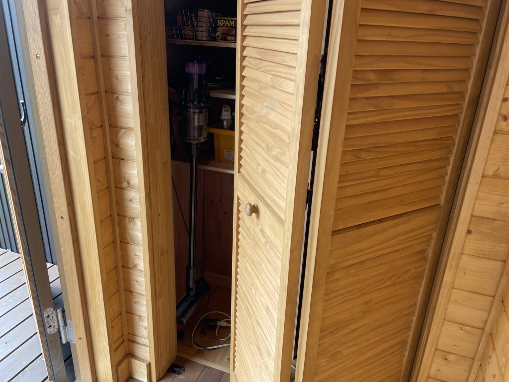 掃除機の片付け場所としても、コンセントを付けてもらって見えないように収納しています。